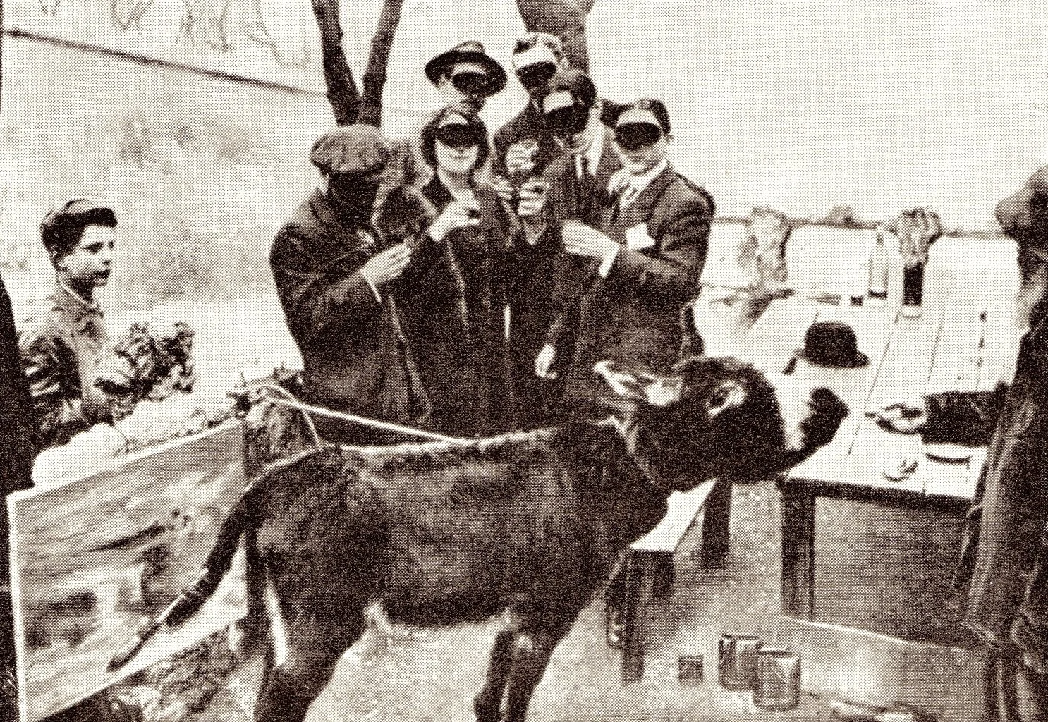 En 1910, l’Avant-garde est entrée en force dans les expositions et le marché. C’est le temps des grands : Monet, Renoir, qui sont encore là avec leurs cadets Matisse, Picasso, Kandinski et dans leur foulée, toute une bande d’artistes de seconde zone qui eux aussi, aspirent à leur place au soleil. Beaucoup de ces derniers exposent aux Indépendants, qui montre l’art contemporain dans son bon, son médiocre et son pire. Pour faire simple : cette année-là, Roland Dorgelès (1885-1973) a 25 ans et n’a pas encore fait grand chose à part fréquenter la Bohème de Montmartre. Il est un peu réactionnaire et n’apprécie pas plus que ça les tendances nouvelles de l’art qui envahit Paris, l’épicentre mondial des arts du temps. Et encore moins ses thuriféraires. Alors, il a une idée. Il va se les payer. A Montmartre, il fréquente le café-cabaret Le Lapin Agile dont Le Père Frédé, le tenancier, a un âne qui broute dans le jardin et dort dans la souillarde : Aliboron, dit “Lolo”. Lolo l’âne sera l’outil de la malice de Dorgelès.